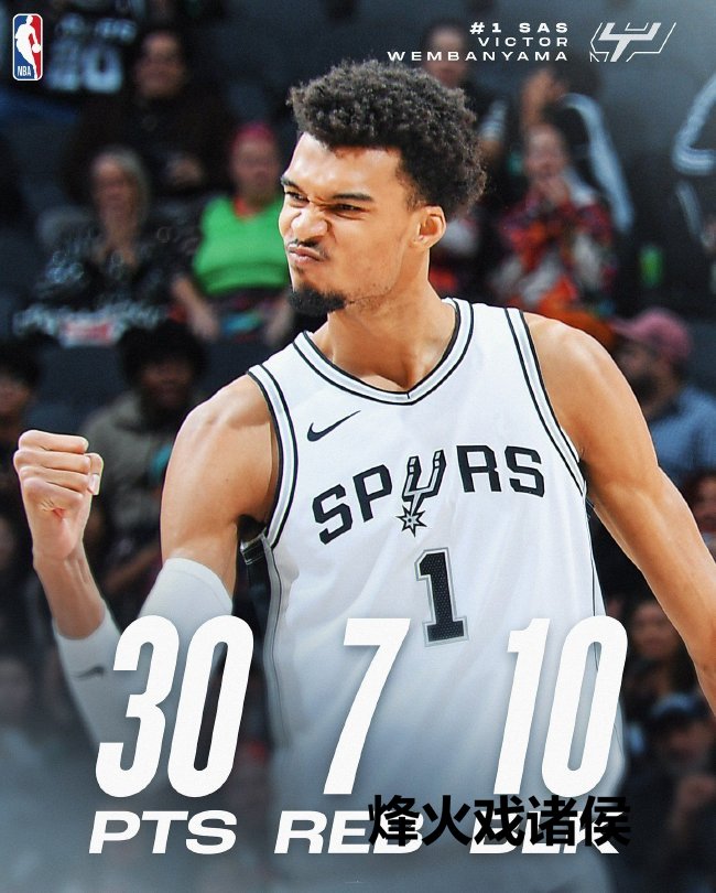 文班亚马出战29分钟,16投8中、三分8中4、罚球11中10砍下30分7篮板3助攻10盖帽,正负值+23率队获取大捷。马刺2连胜,15胜13负升至西部第九。